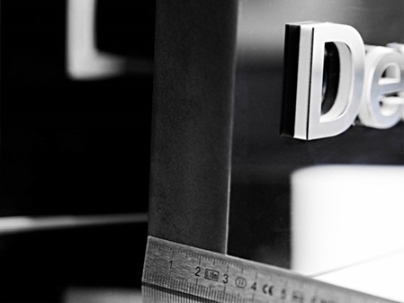 Plexiglas® lässt sich sehr gut mit Edelstahl kombinieren. Kontrastreiches farbiges Acrylglas kann dabei zum Einsatz kommen und Akzente setzen. Die Kombination aus Metallfront und transparentem Acrylglas eignet sich gut als "Durchstecker". Die Montage von Plexiglas®-Buchstaben mit Metallfronten ist zum Beispiel mit rückseitigen Abstandshaltern oder doppelseitigem Hochleistungsklebeband möglich.