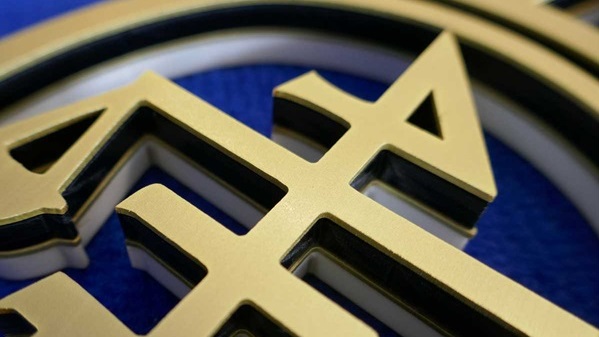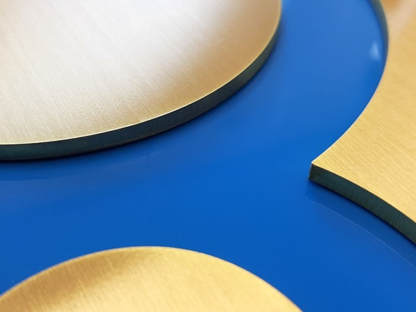 Acrylglas mit Messingfronten verleihen Logos und Schriftzügen einen eleganten Stil. Ob Bankhaus, Kanzlei oder Traditionsmarke: Messing betont Wertigkeit.
