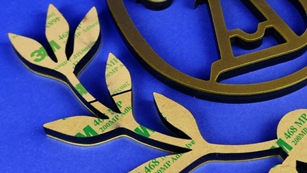 Auch Sandwich-Buchstaben erhalten Sie bei uns mit rückseitig aufgebrachtem 3M 468 Klebeband. Dieses doppelseitige Klebeband wird bereits vor dem Lasern rückseitig aufgebracht. Dadurch können auch Buchstaben und Logos mit dünneren Strichstärken für eine Wandmontage genutzt werden.