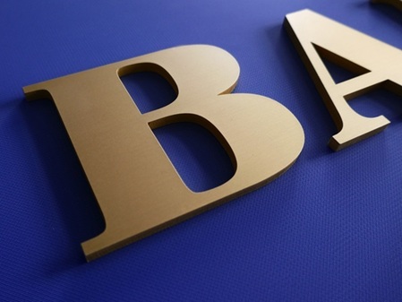 Buchstaben aus Messing oder Kupfer fertigen für Sie, je nach Materialstärke, gelasert, gefräst oder mit Abrasivstrahlschneidtechnik. Poliertes Messing wirkt sehr hochwertig und elegant, perfekt für qualitative Markenprodukte, Banken oder Versicherungen. Rohes Messing hat einen rustikalen Look und passt gut zu handwerklichen Berufen, Kirchen oder denkmalgeschützten Bauten. Lassen Sie Ihrer Werbe-Kreativität freien Lauf - wir fertigen die passenden Buchstaben für Sie.