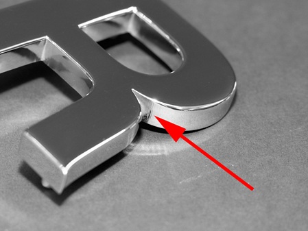 Die mechanische Polierung der Laser-Schnittkanten ist im Rahmen der technischen Möglichkeiten auch immer von der Größe der Buchstaben und der Ausschnitte bzw. Innenwinkel abhängig.